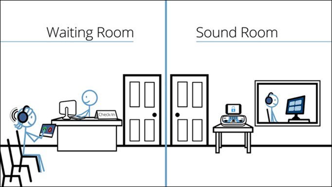 A. Das GSI AMTAS Flex besitzt ein integriertes Raumgeräuschüberwachungssystem, das die Umgebung während eines Tests bewertet, um festzustellen, ob die Ergebnisse durch Hintergrundgeräusche und Ablenkungen beeinflusst wurden. Für die Durchführung des Tests sollte ein ruhiger Ort gewählt werden. Das GSI AMTAS Flex sollte in einer Umgebung wie einem Untersuchungs- oder Büroraum, abseits stark frequentierter Bereiche eingesetzt werden. Das GSI AMTAS Flex besitzt ohrumschließende Kopfhörer, um Umgebungsgeräusche zu reduzieren und es dem Patienten zu ermöglichen, sich auf den Test zu konzentrieren.